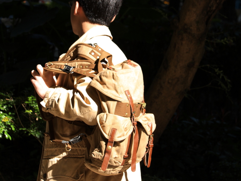 這包款嚴格選用了特級16安斯耐磨厚質帆布料搭配真皮與銅色五金配件
