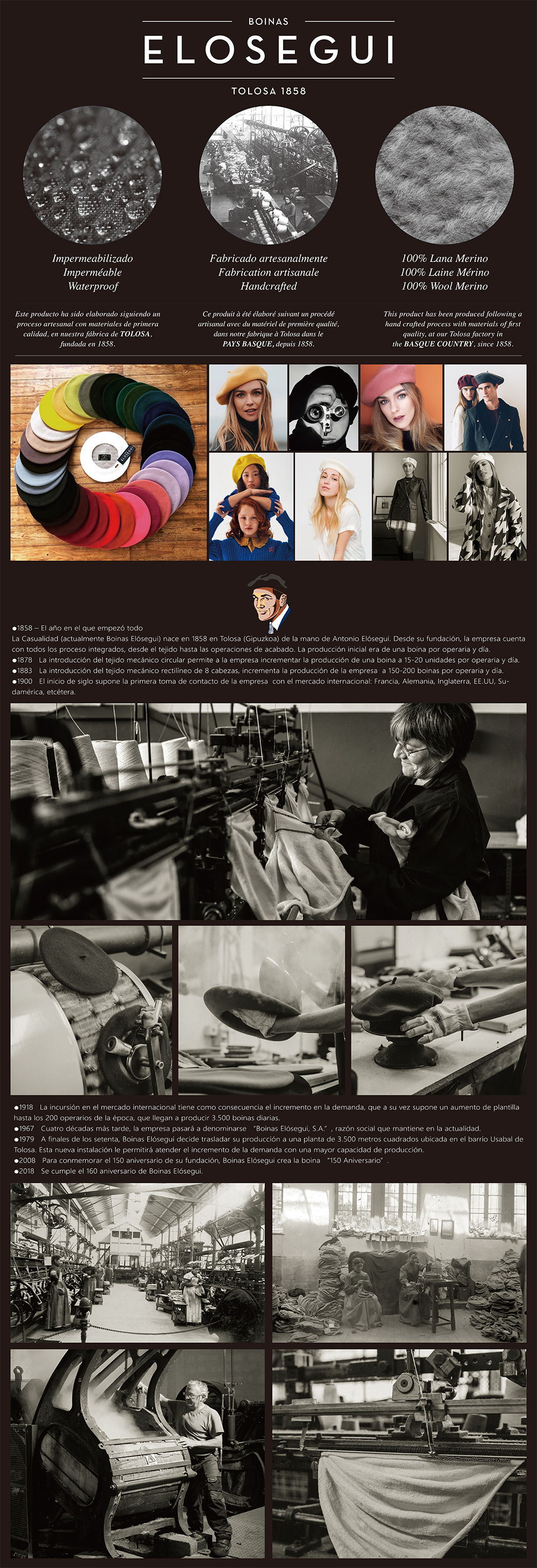 1858年;由Antonio Elósegui於西班牙貝雷帽發源地巴斯克地區托洛薩創立